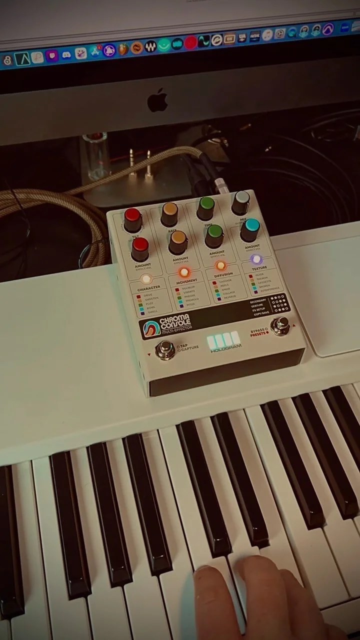 The work started as strictly guitar loops but grew to incorporate drum machines, soft synths, and now, modular synths.